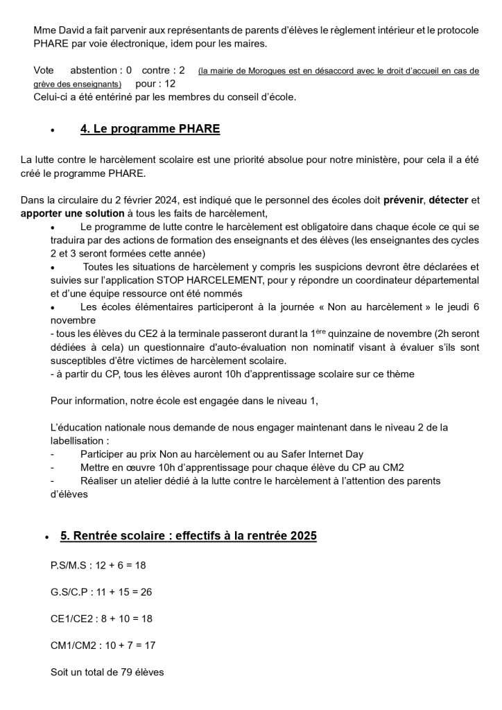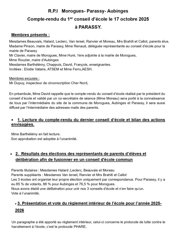 COMPTE RENDU CONSEIL D’ECOLES DU 17 OCTOBRE 2025