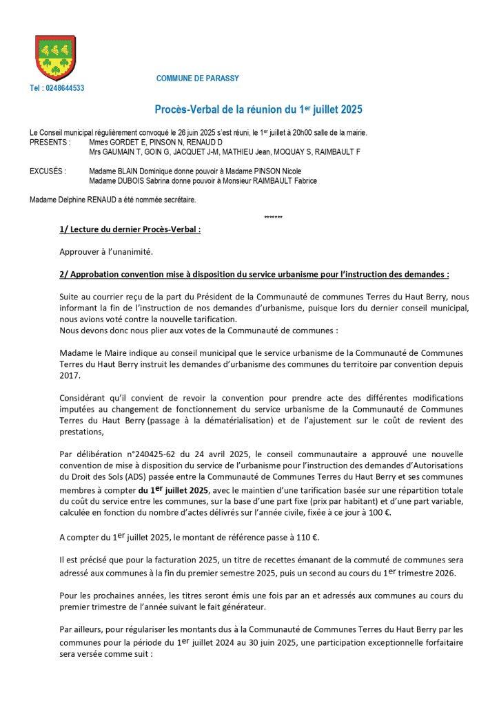 COMPTE RENDU CONSEIL MUNICIPAL DU 1er JUILLET 2025