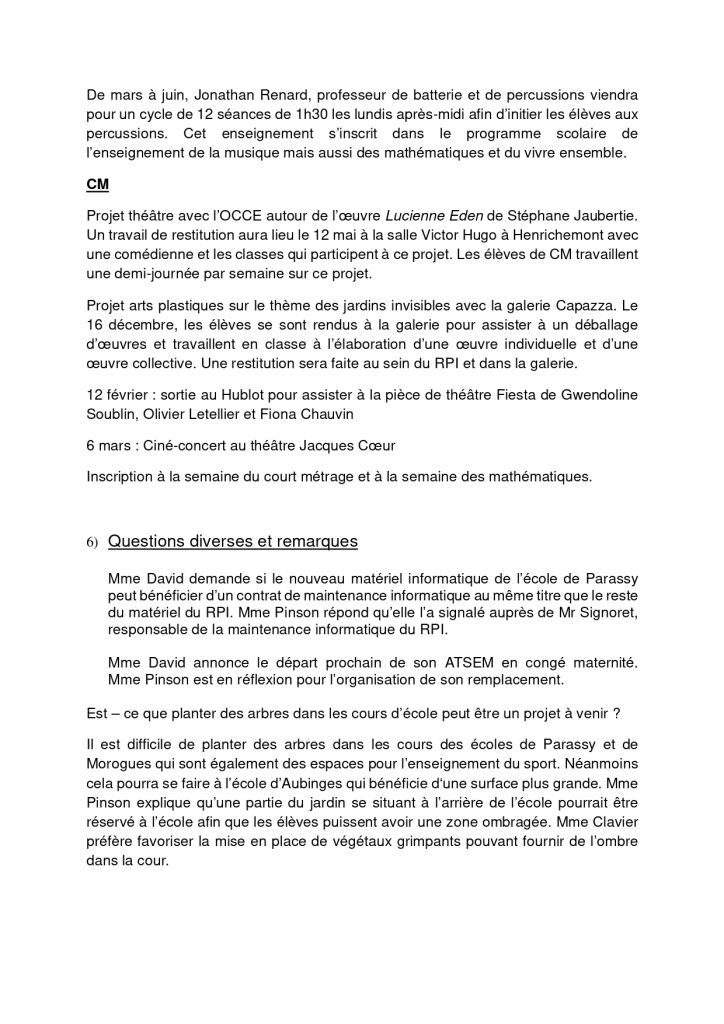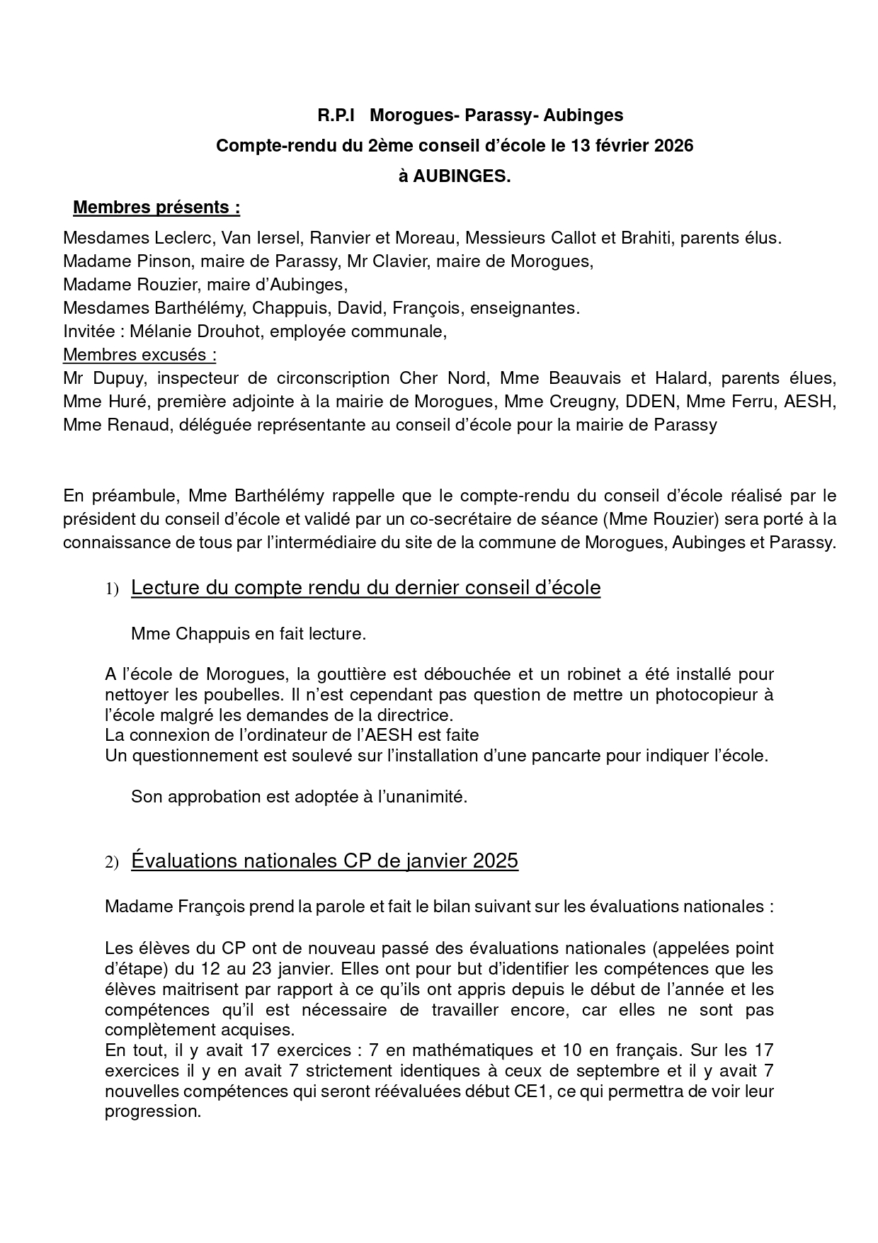 Compte rendu conseil d’écoles du 13/02/2026 à Aubinges