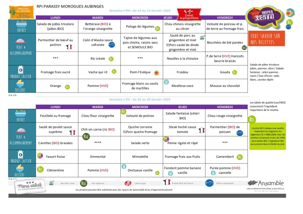 MENUS DE NOEL ET JANVIER RESTAURATION SCOLAIRE