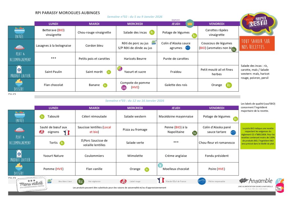 MENUS DE NOEL ET JANVIER RESTAURATION SCOLAIRE